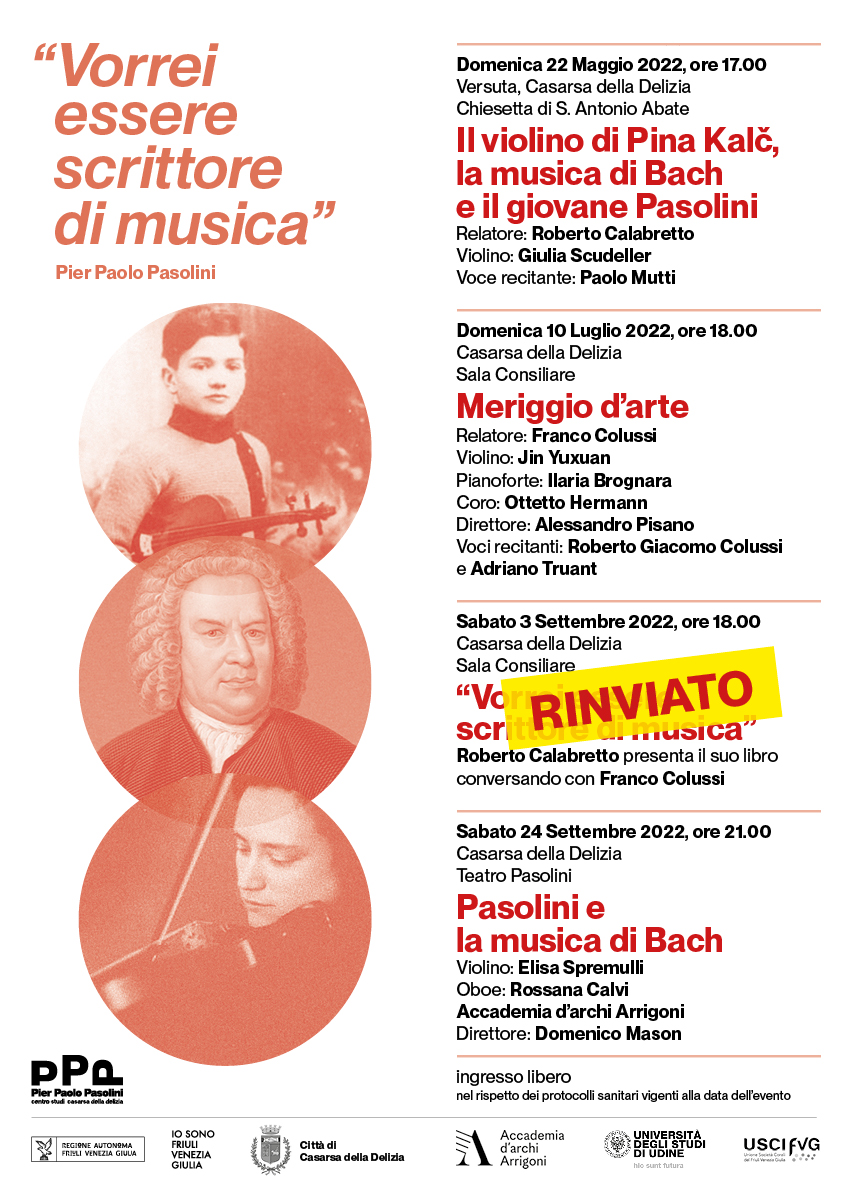 L’evento, inizialmente programmato per sabato 3 settembre 2022 alle 18.00 nella Sala Consiliare del Comune di Casarsa, fa parte dell’omonima rassegna organizzata dal Centro Studi Pier Paolo Pasolini.
