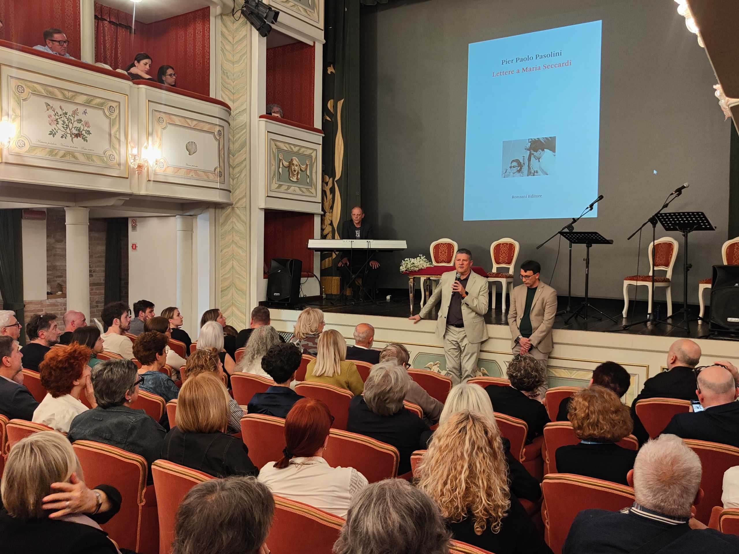 Teatro Arrigoni gremito sabato 10 maggio a San Vito al Tagliamento per la presentazione in anteprima nazionale del volume “Pier Paolo Pasolini. Lettere a Maria Seccardi”, pubblicato da Ronzani Editore il 5 marzo scorso, giorno in cui il poeta avrebbe compiuto 100 anni.