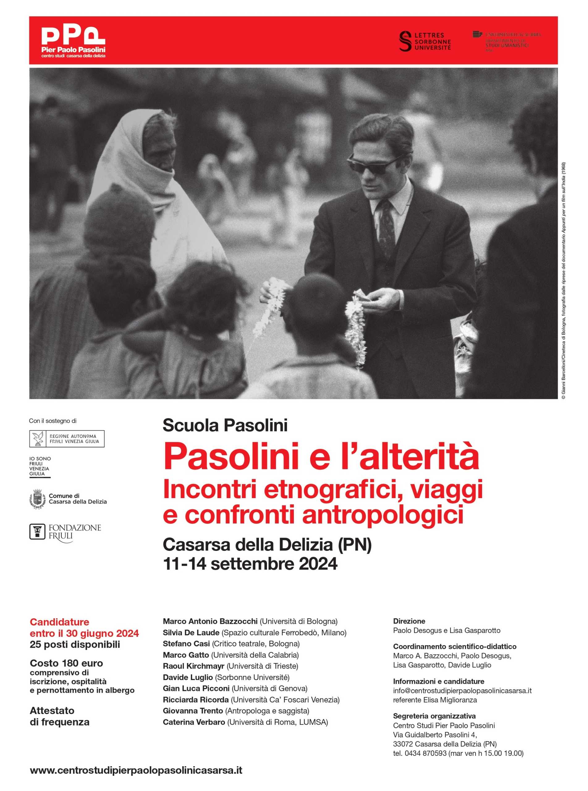 Alla Scuola organizzata dal Centro Studi Pier Paolo Pasolini con la direzione dei docenti Lisa Gasparotto (Università di Milano-Bicocca) e Paolo Desogus (Sorbonne Université Parigi), prenderanno parte 25 giovani studiosi pasoliniani, tra studenti universitari, laureandi e dottorandi, provenienti dall’Italia e dall’estero.