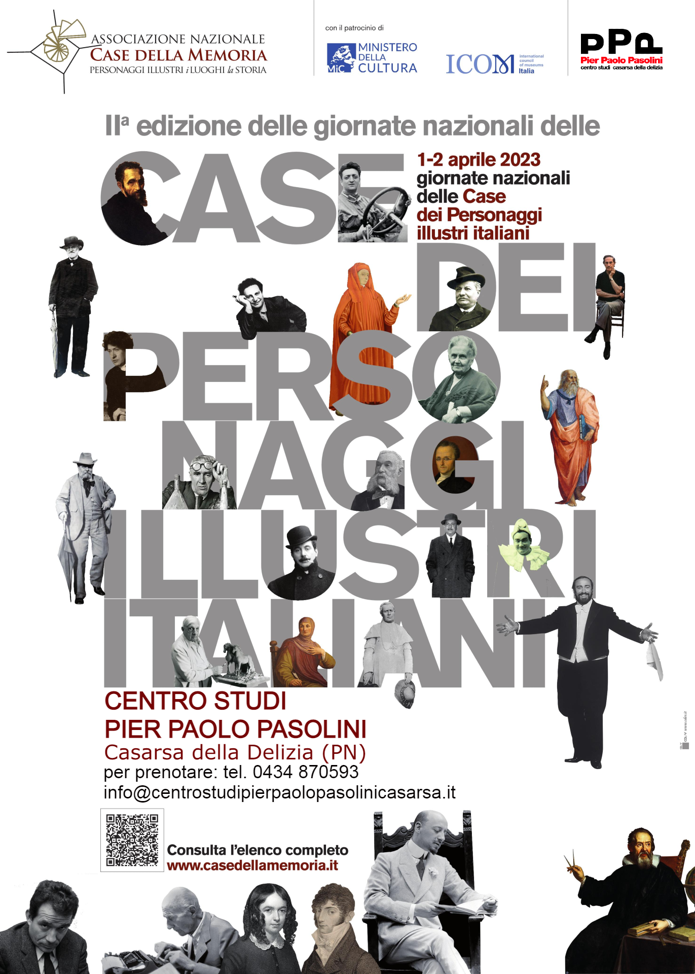 Anche Casa Colussi – Centro Studi Pier Paolo Pasolini di Casarsa partecipa alla seconda edizione delle Giornate nazionali delle Case dei personaggi illustri, promosse in tutta Italia nel fine settimana dell’1 e 2 aprile dall’Associazione Nazionale Case della Memoria. Due giorni dedicati ai luoghi – oltre un centinaio in tutta Italia – che custodiscono la memoria e il lascito dei grandi personaggi che hanno fatto la storia del nostro Paese, tra scienziati, scrittori, artisti, musicisti e molti altri ancora.