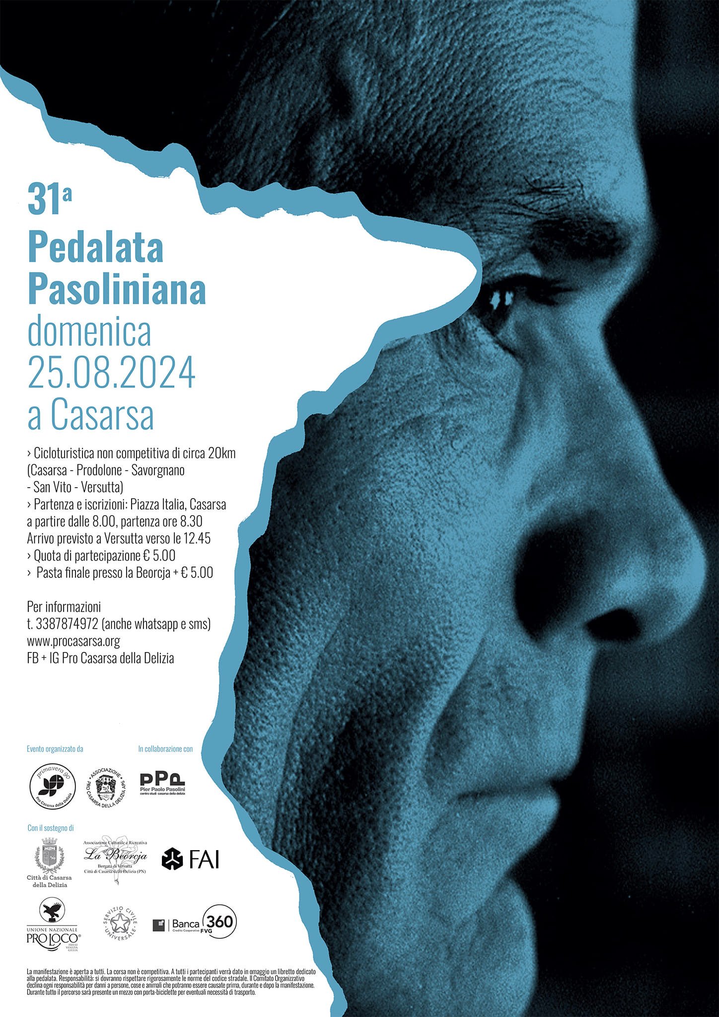 Il percorso di quest’anno, lungo circa 20 chilometri, si snoderà tra i suggestivi paesaggi della zona di Casarsa della Delizia, offrendo ai partecipanti l’opportunità di esplorare i luoghi che hanno avuto un impatto significativo sulla produzione artistica di Pasolini. Il ritrovo per le iscrizioni è fissato in Piazza Italia alle ore 8.00, con partenza prevista alle 8.30. L’arrivo è previsto a Versutta intorno alle 12.45.